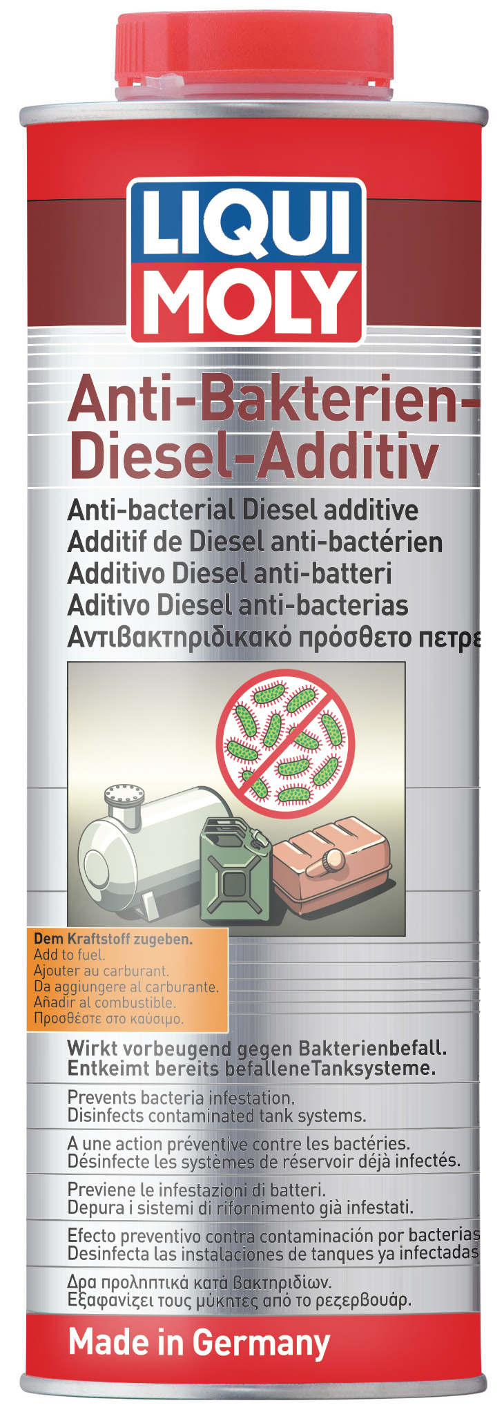 Das Additiv schützt gegen die so genannte Dieselpest. Sie breitet sich in länger stillgelegten oder wenig genutzten Dieselfahrzeugen aus. Dazu gehören beispielsweise Bau- und Landmaschinen, Nutzfahrzeuge, Wohnmobile, Pkw und Lagertanks auf der eigenen Betriebs- oder Hoftankstelle. Die strengere Chemikalienverordnung führte dazu, dass derlei Produkte nur noch sehr eingeschränkt verfügbar waren. Die Zusammensetzung des Anti-Bakterien-Diesel-Additivs wurde von LIQUI MOLY angepasst und kann deshalb in Selbstbedienung und auf dem Versandweg an Endverbraucher verkauft werden.
