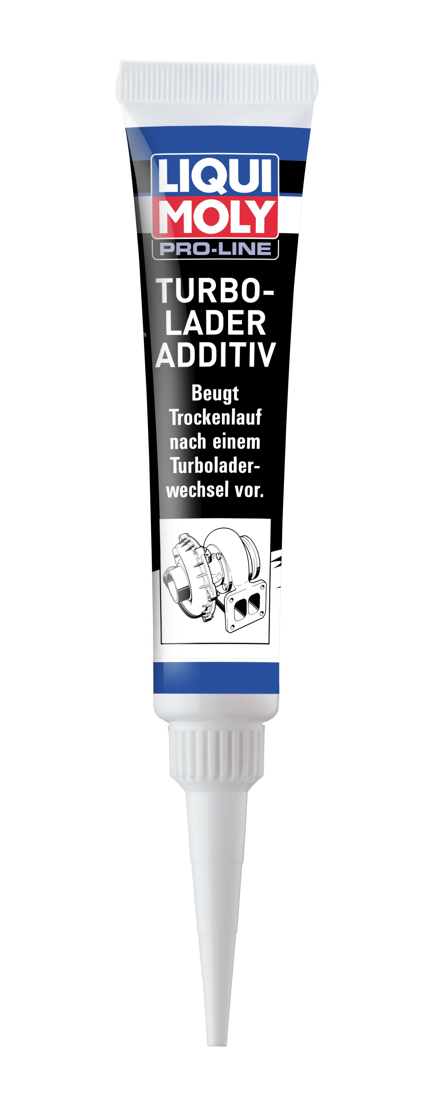 Die kleine Tube mit dem Turbolader Additiv ist bei LIQUI MOLY in der Pro-Line angesiedelt. Das ist diejenige Produktlinie, in der die chemischen Spezialwerkzeuge für Profis zusammengefasst sind.