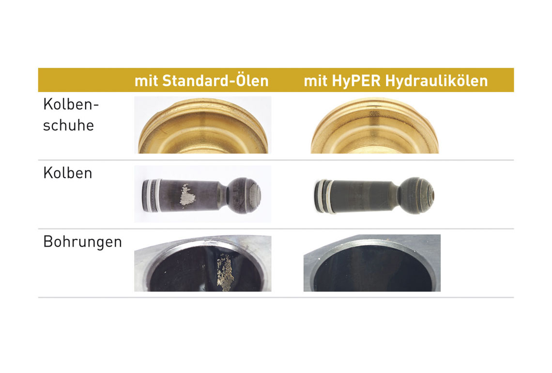 Die HyPER-Hydrauliköl-Serie von LIQUI MOLY umfasst ausschließlich Öle, die den höchsten gültigen Standard erfüllen. Diese Schmierstoffe tragen zu einer längeren Lebensdauer der Hydraulikkomponenten bei, weil sie den Verschleiß beispielsweise an den Buntmetallen und an der Nitrierschicht von Kolben und Bohrungen reduzieren. Gleichzeitig erhöhen sie die Verfügbarkeit des Systems, weil sie die Fehlerhäufigkeit verringern. Ihre verbesserte Dichtungsverträglichkeit mindert undichte Stellen an Schlauchverbindungen. Auch die Zahl geplatzter Schläuche sinkt deutlich. Verglichen mit herkömmlichen Hydraulikölen ermöglichen HyPER-Hydrauliköle längere, typischerweise verdoppelte Wechselintervalle. „Das führt dazu, dass das qualitativ wesentlich hochwertigere Öl unterm Strich nicht nur deutlich mehr technische Vorteile bietet, sondern auch preiswerter ist als ein herkömmliches Hydrauliköl“, sagte der LIQUI MOLY-Experte.