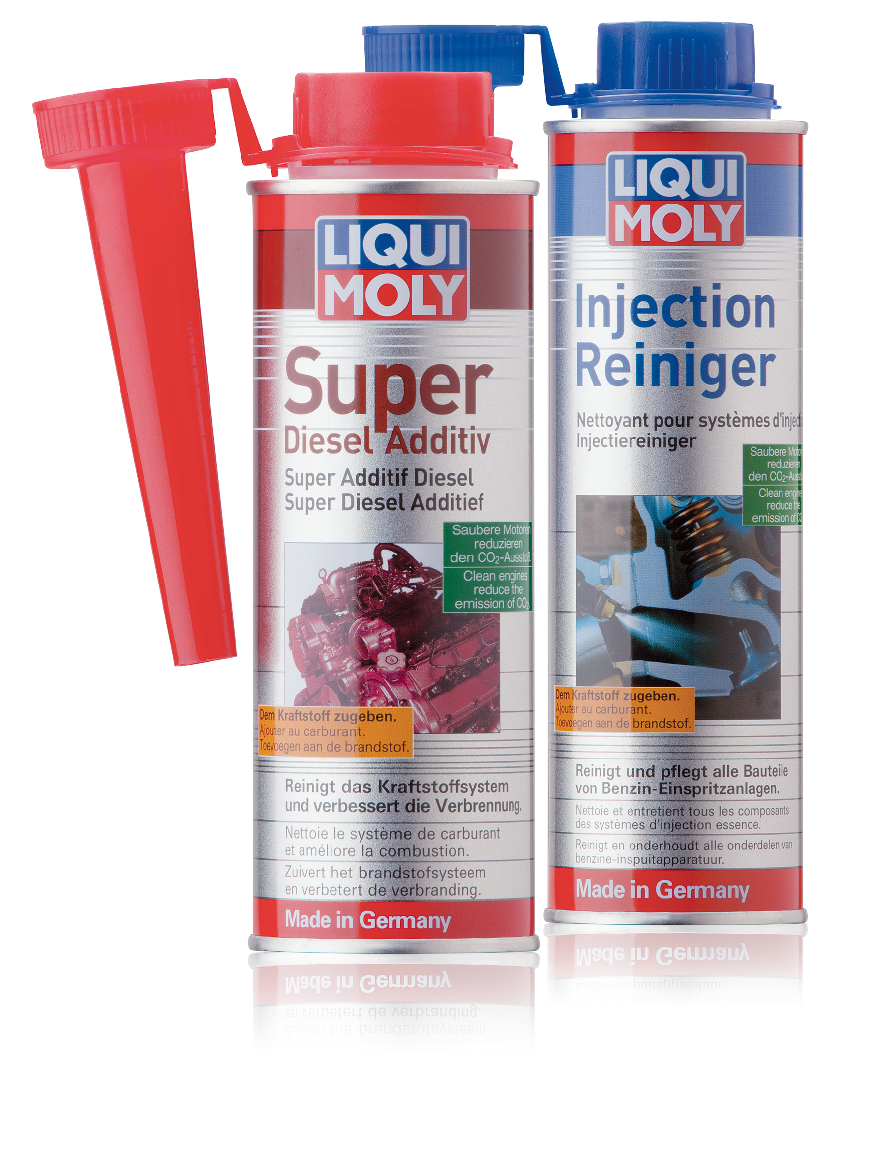 Die Auswirkungen schwankender Kraftstoffqualitäten lassen sich mithilfe von Additiven minimieren. Für Benzin betriebene Fahrzeuge empfiehlt David Kaiser den Injection Reiniger: „Er entfernt Ablagerungen im Einspritzsystem. Das verbessert die Verbrennung und führt zu sinkendem Spritverbrauch und niedrigeren Emissionenswerten.“ Der LIQUI MOLY-Benzinzusatz verbessert die Gasannahme und trägt dazu bei, dass der Motor sein ursprüngliches Leistungsvermögen zurückbekommt. Außerdem schützt das Additiv vor Korrosion. Auch für Dieselfahrzeuge gibt es Kraftstoffzusätze. Das Pendant zum Injection Reiniger ist das Super Diesel Additiv, das ebenfalls Ablagerungen im Einspritzsystem und im Brennraum entfernt und deren Neubildung verhindert. Der Dieselzusatz erhöht die Cetanzahl und verbessert die Zündwilligkeit des Kraftstoffs für einen ruhigeren Motorlauf. „Ein spezieller Schmierverbesserer schützt die Einspritzpumpe des Fahrzeugs auch dann, wenn einmal Dieselkraftstoff getankt wurde, der die geforderten Schmiereigenschaften missen lässt“, so der Forschungsleiter.